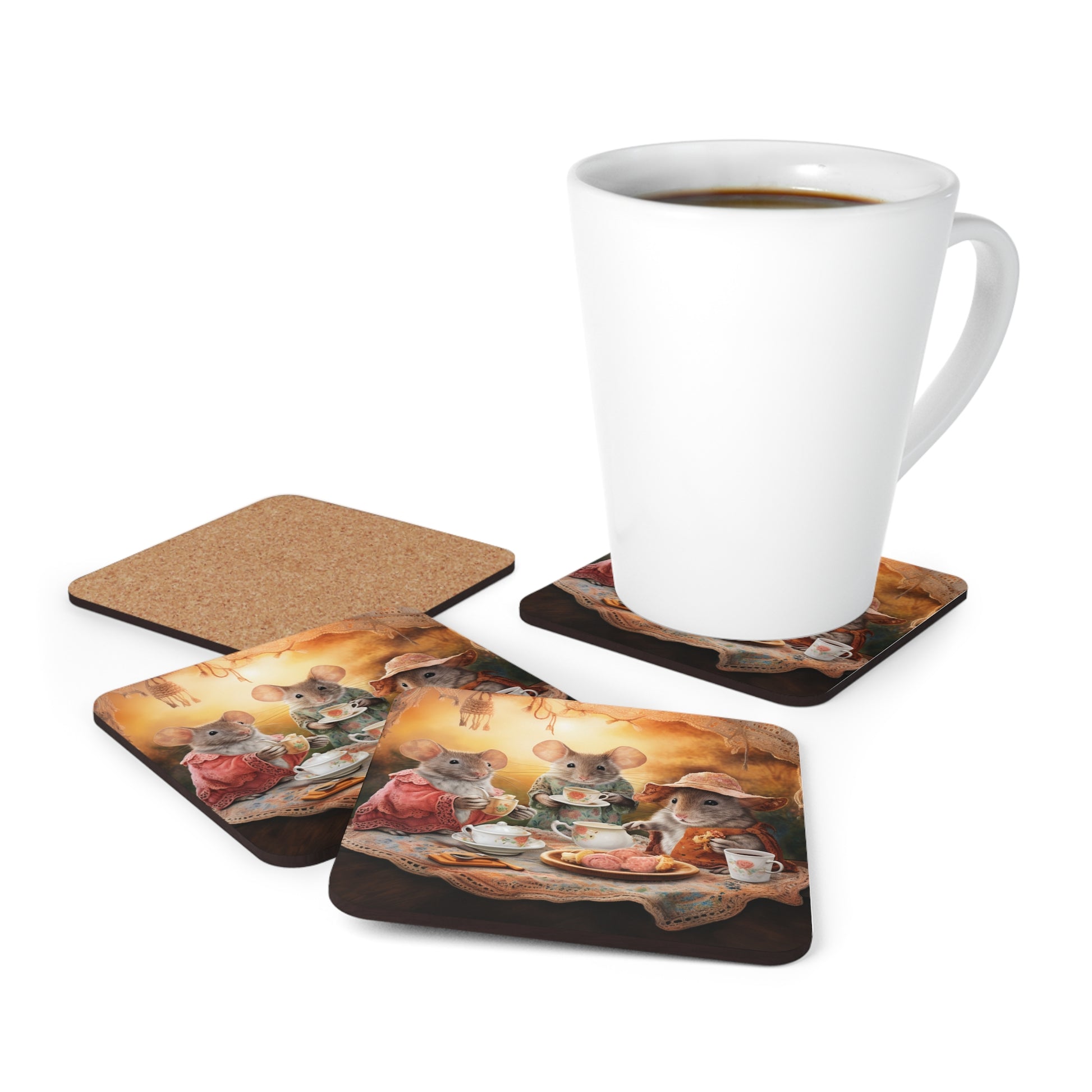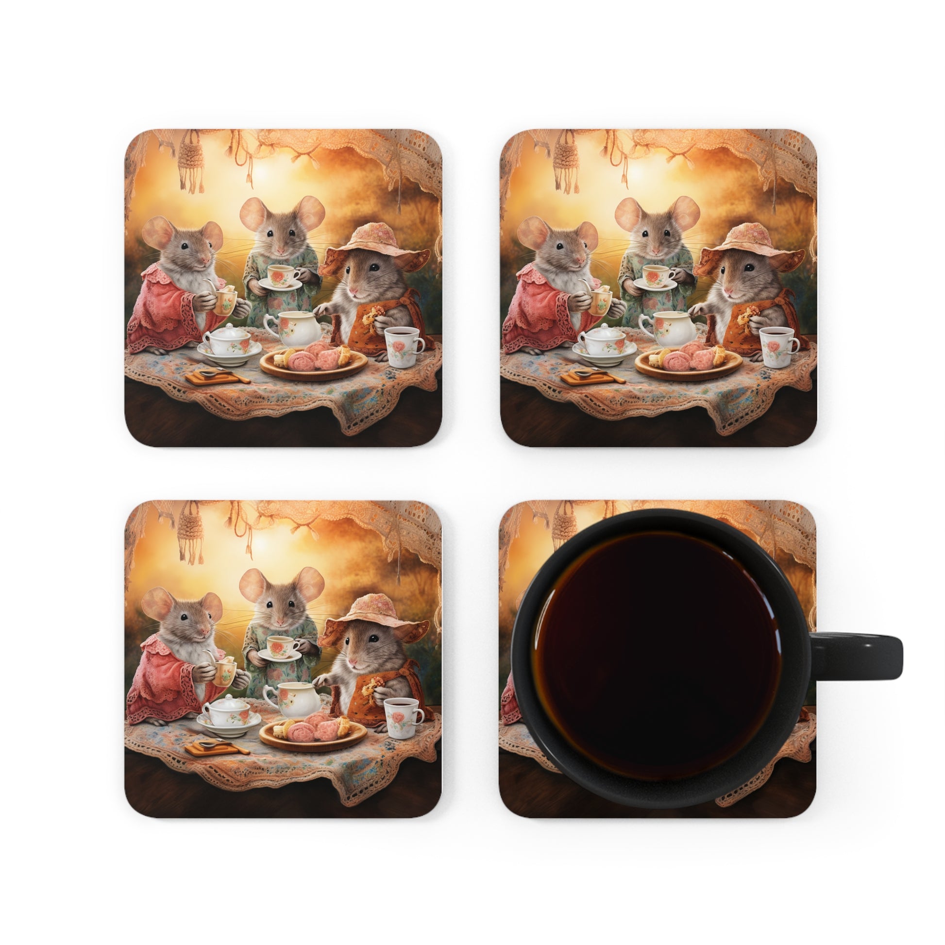 Delight in the whimsy of our Dawn's Delight - Native Australian Mice Tea Party Coaster Set, each crafted meticulously with an eye for detail. This unique quartet pays homage to the enchanting outback with its portrayal of a group of native Australian mice, merrily partaking in a dawn tea party.
