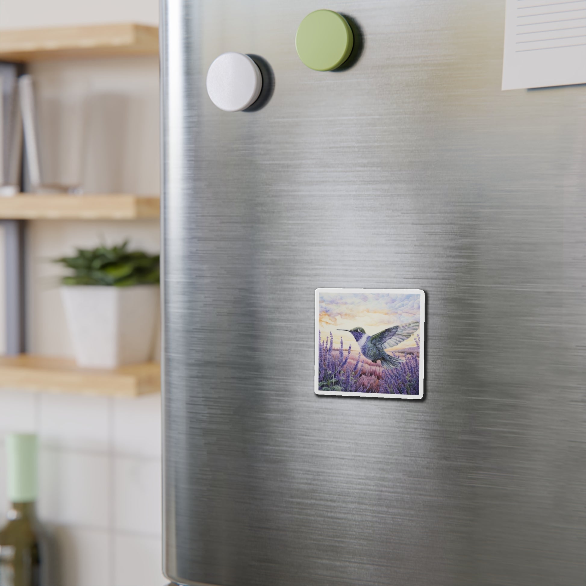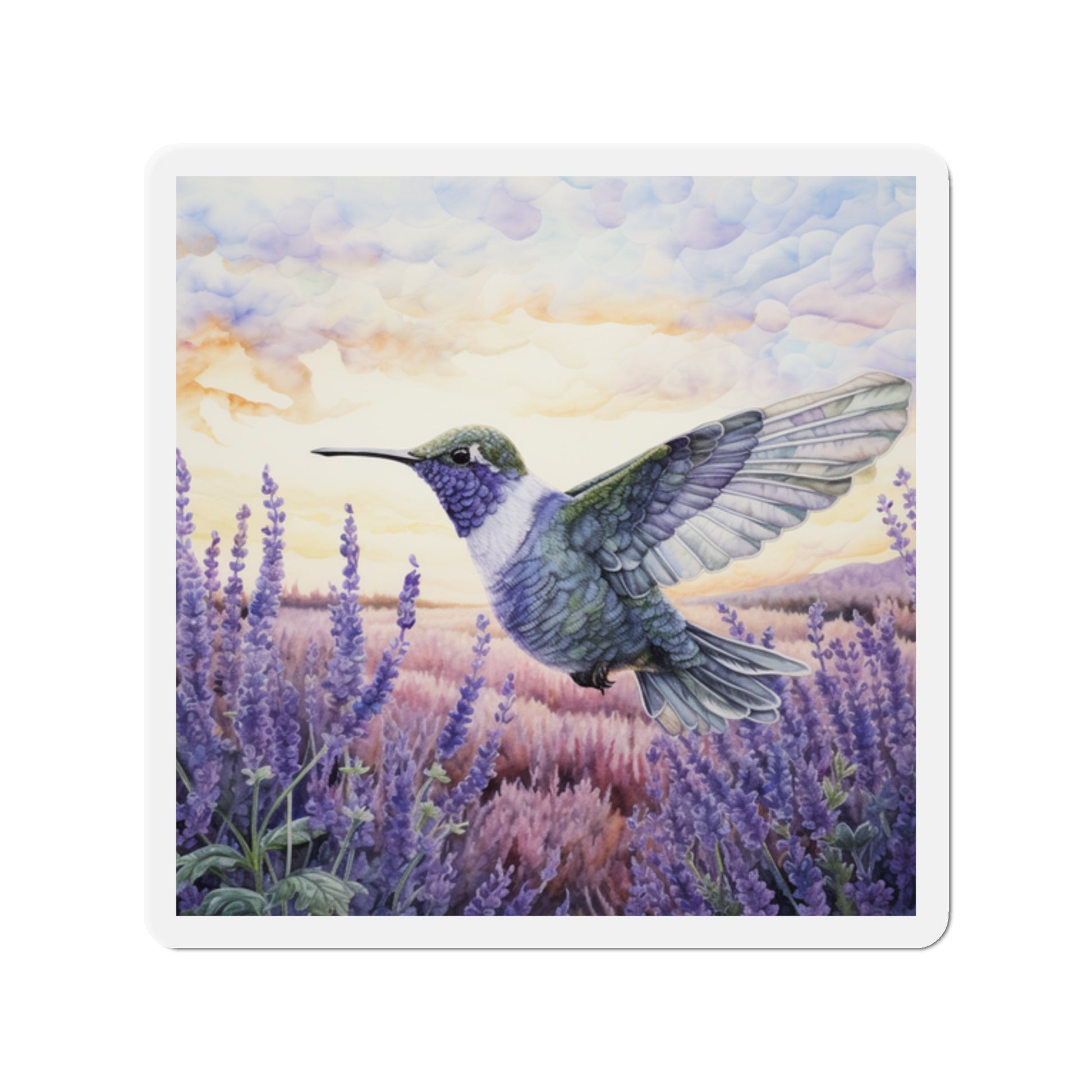Discover the enchanting beauty of our magnet, featuring a watercoloured painting of a hummingbird in a lavender field. This delicate piece captures the hummingbird's grace as it hovers above vibrant lavender blossoms, blending soft hues to create a dreamlike scene. Crafted with precision, the magnet offers a touch of nature's elegance for your home or office. It's a perfect gift for those who appreciate art and the serene charm of the outdoors. Add this unique magnet to your collection and let it transport you to a tranquil countryside.