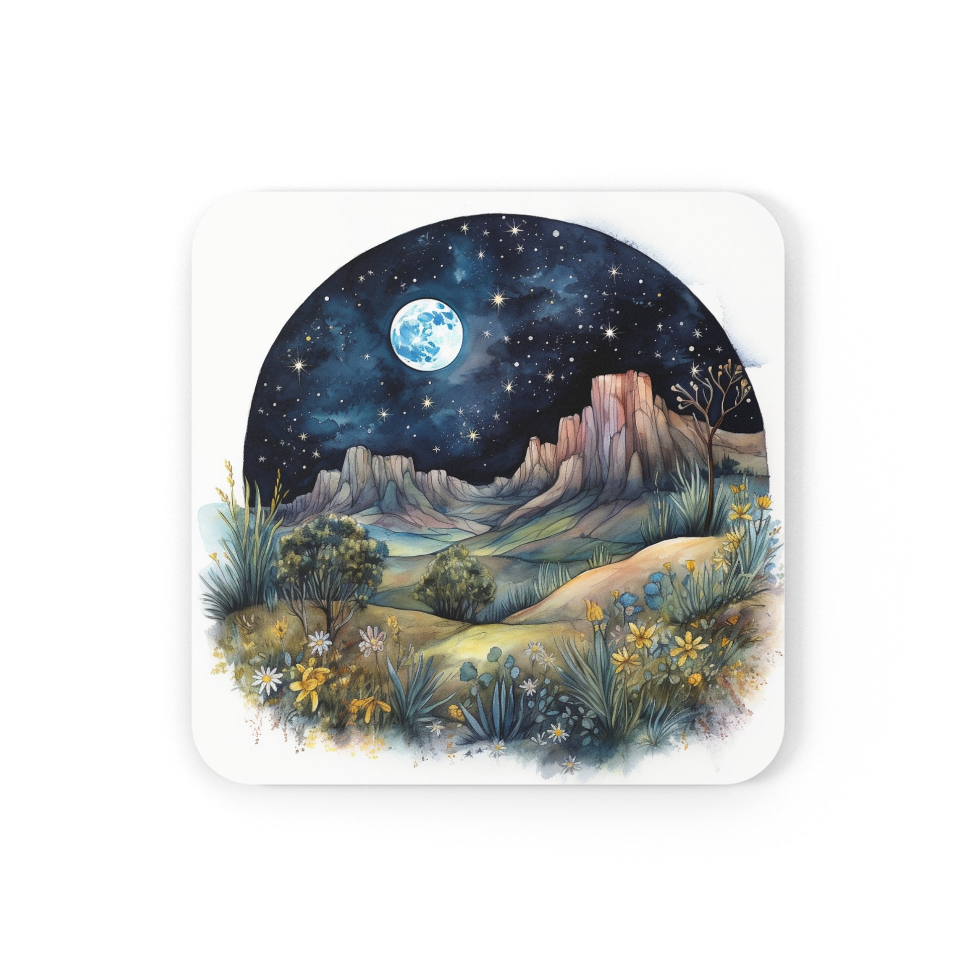 Enhance your home with this set of coasters, and let the tranquil charm of the Australian mountains under a starlit sky accompany your favorite beverages.