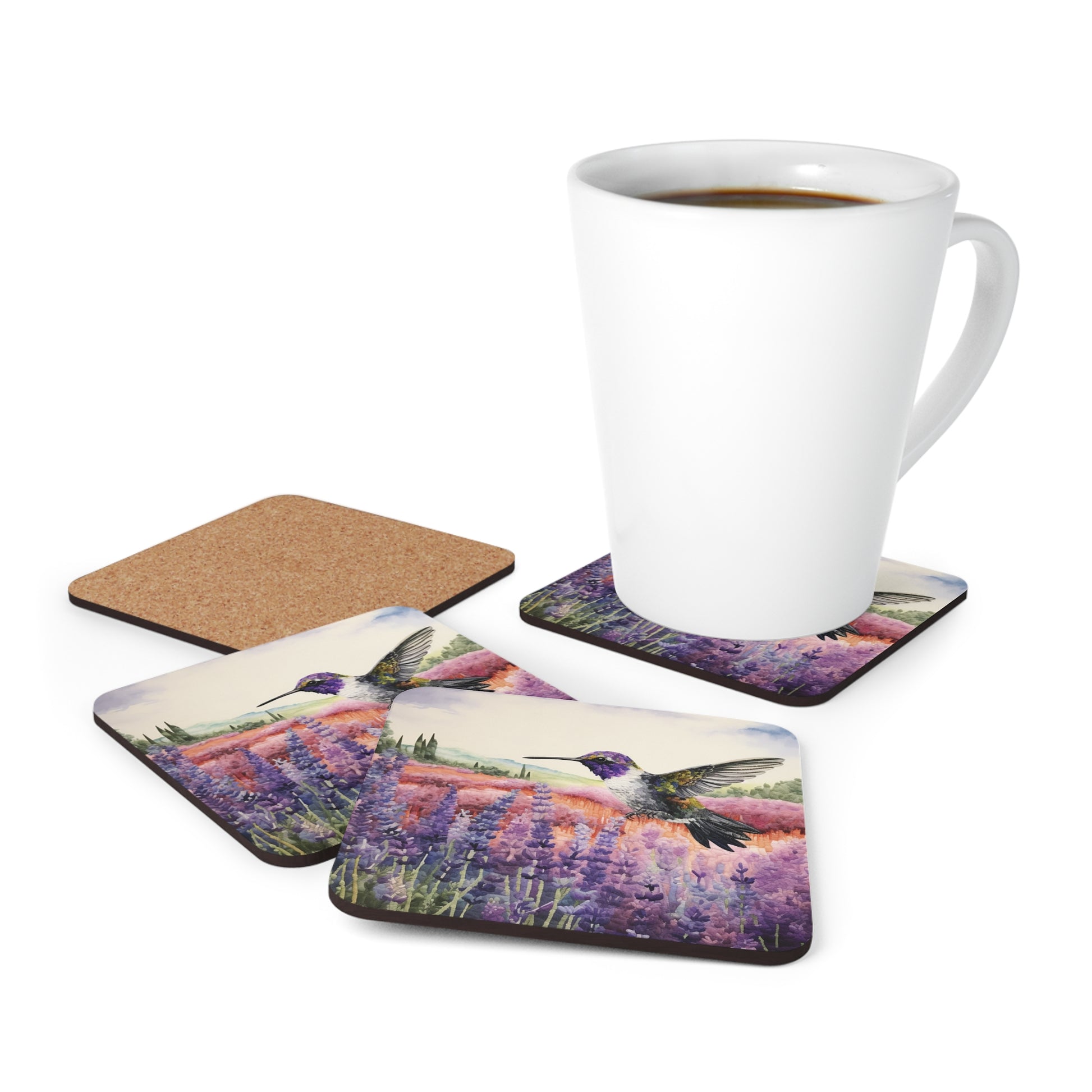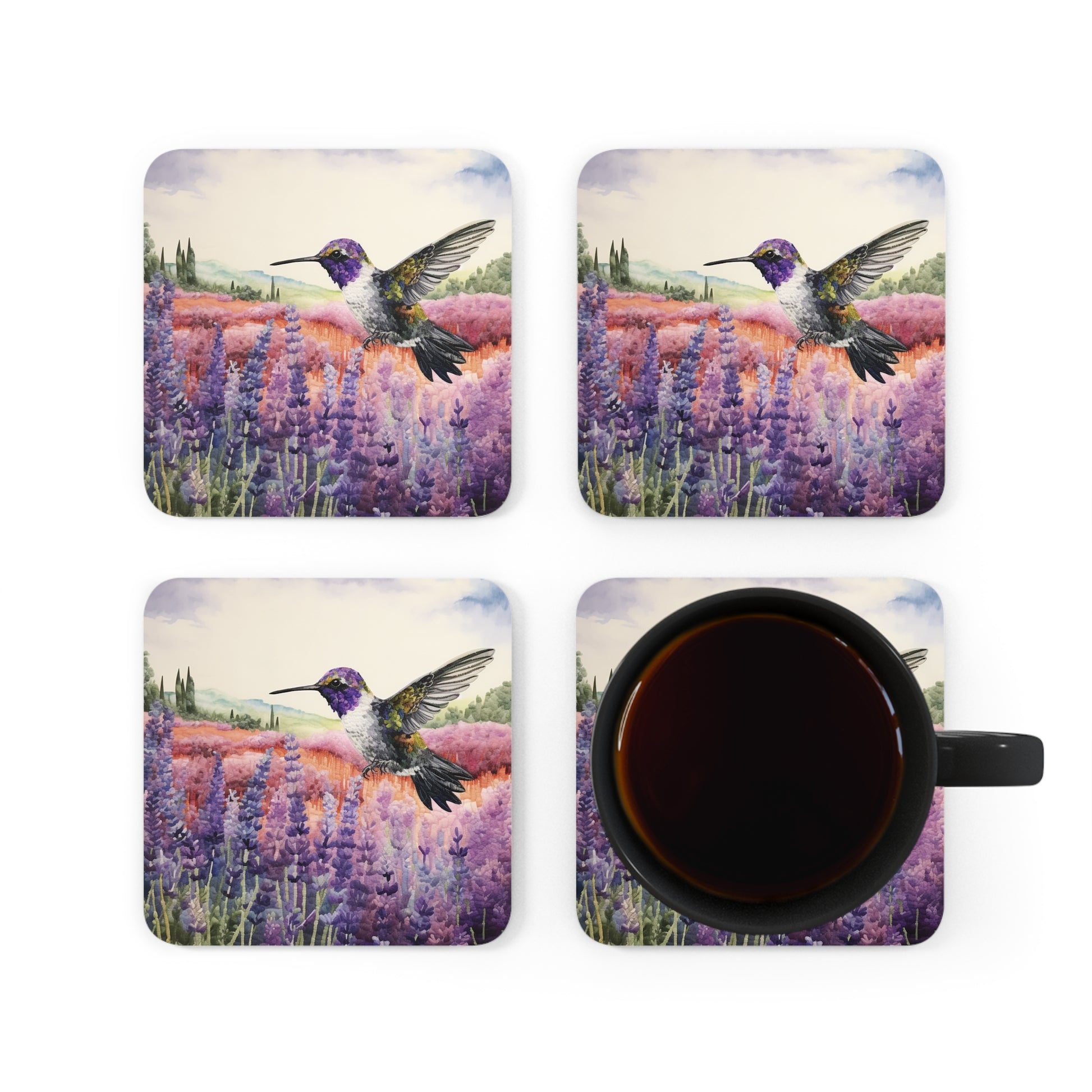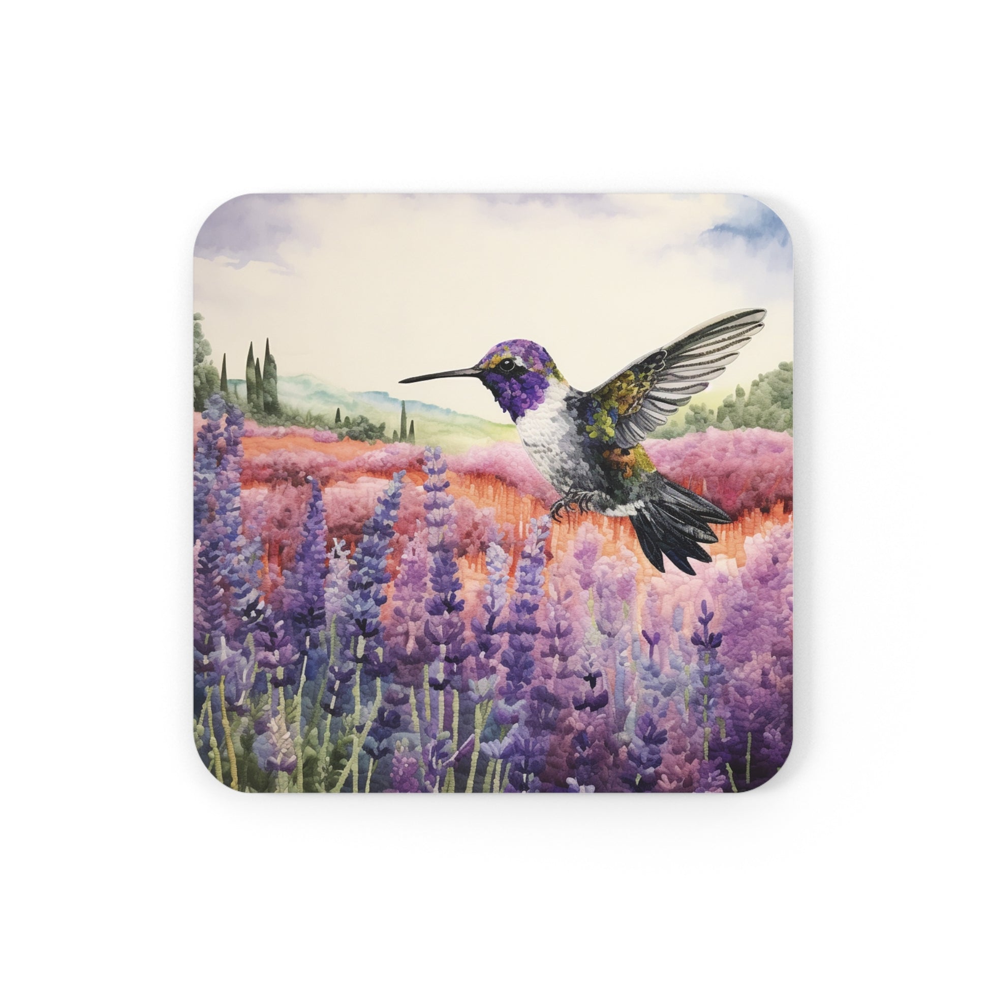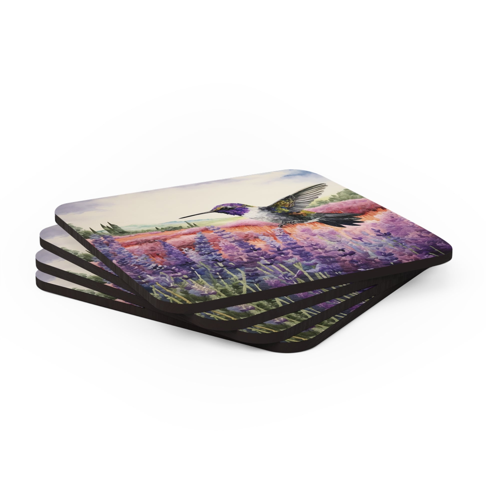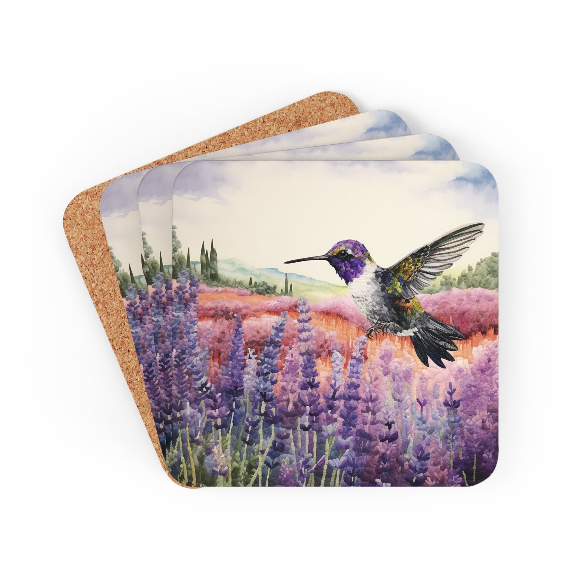 Watercoloured Whispers: Hummingbirds in Lavender Field Coasters (Series 1)