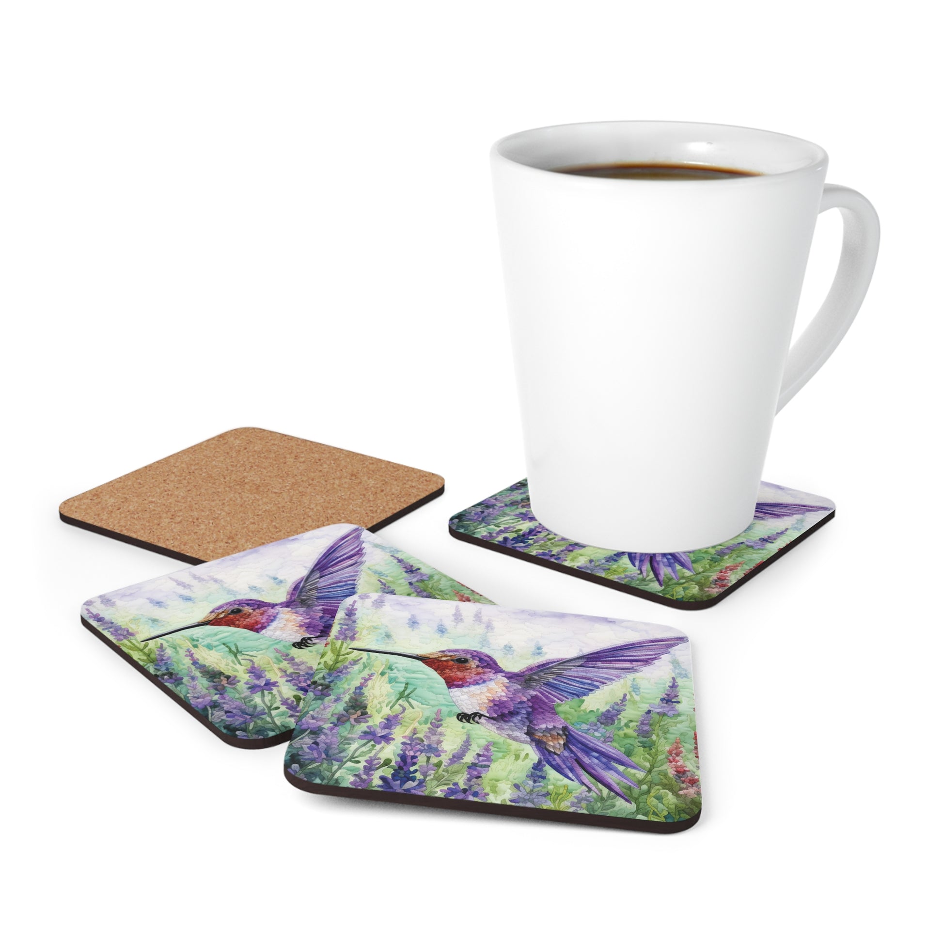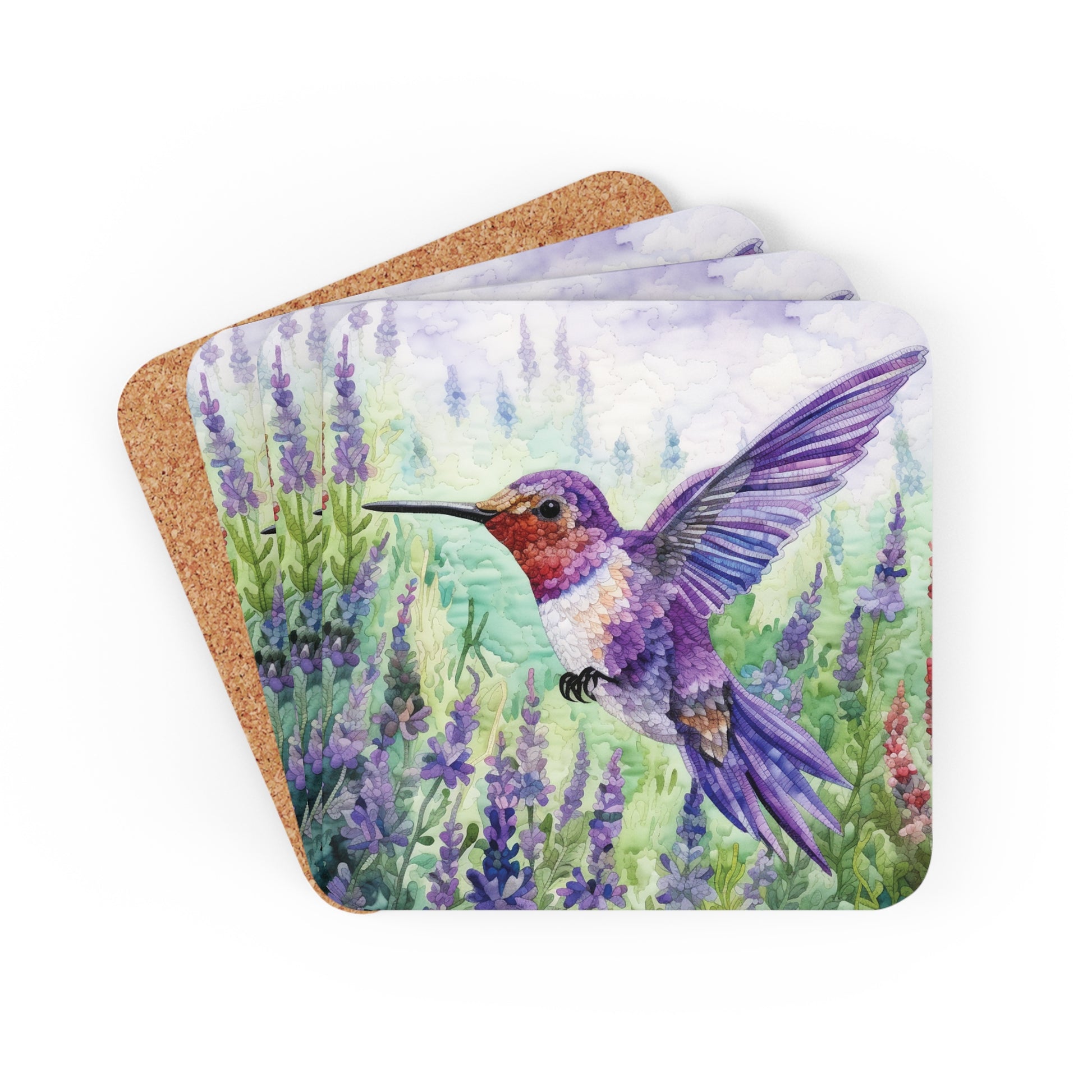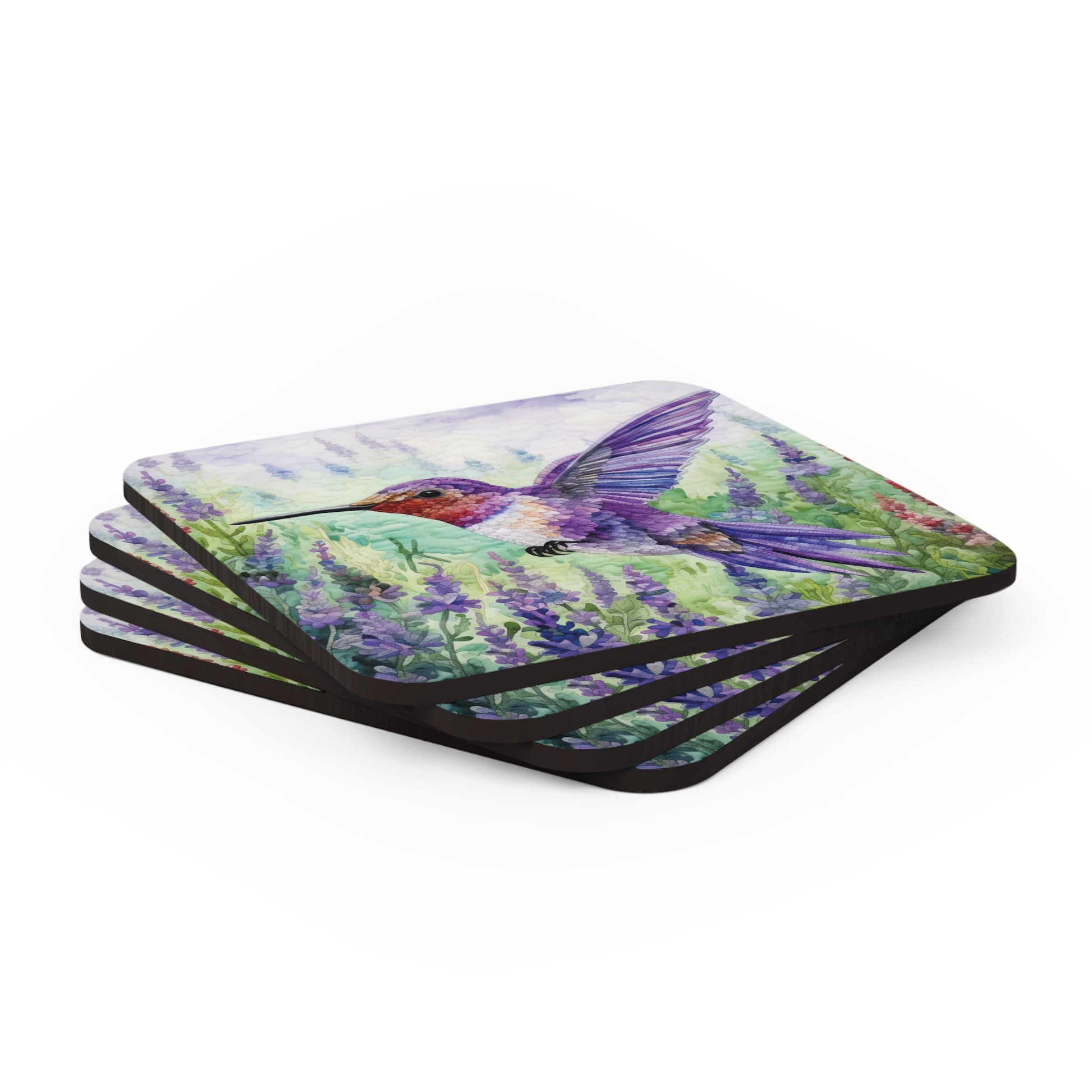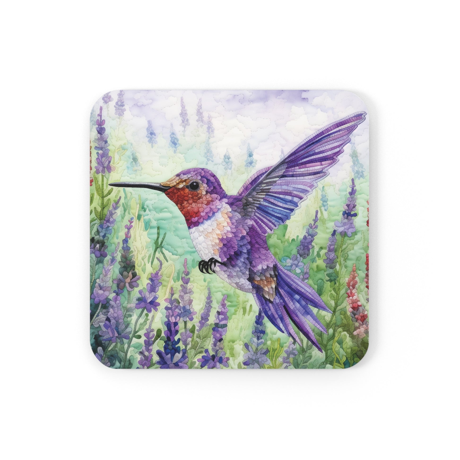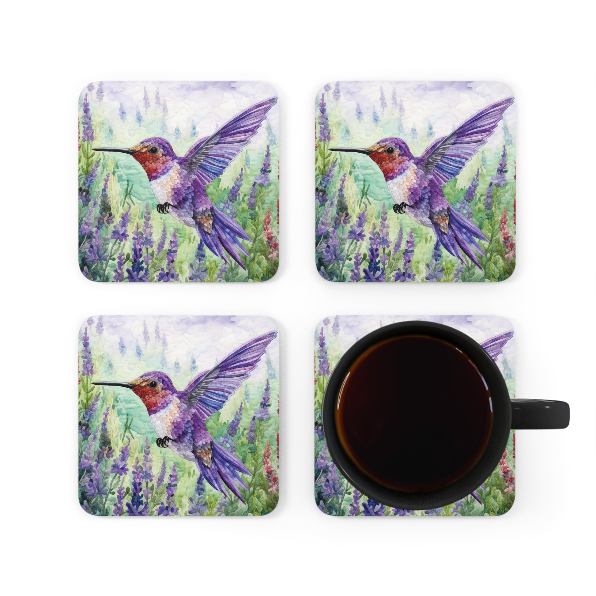 Watercoloured Whispers: Hummingbirds in Lavender Field Coasters (Series 4)