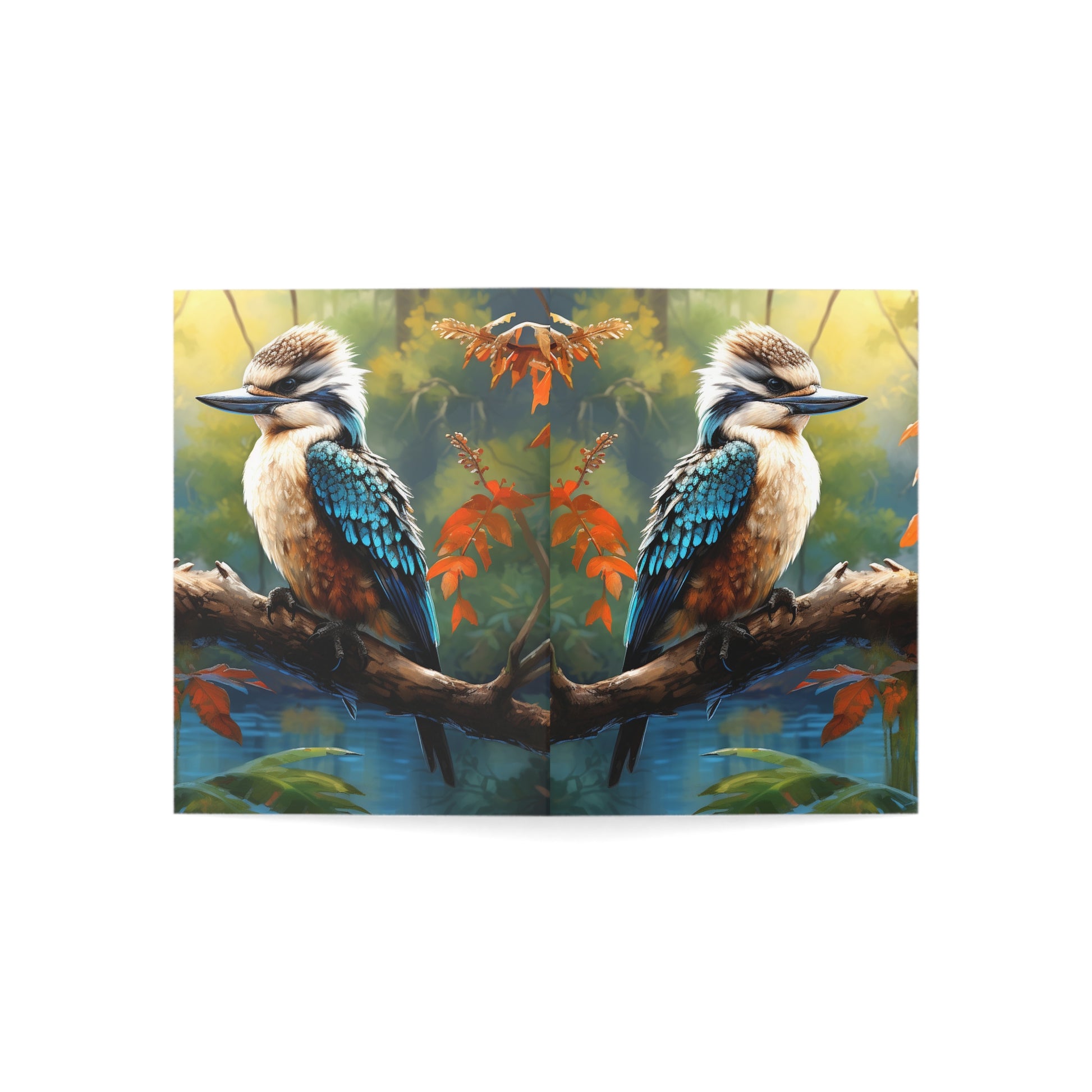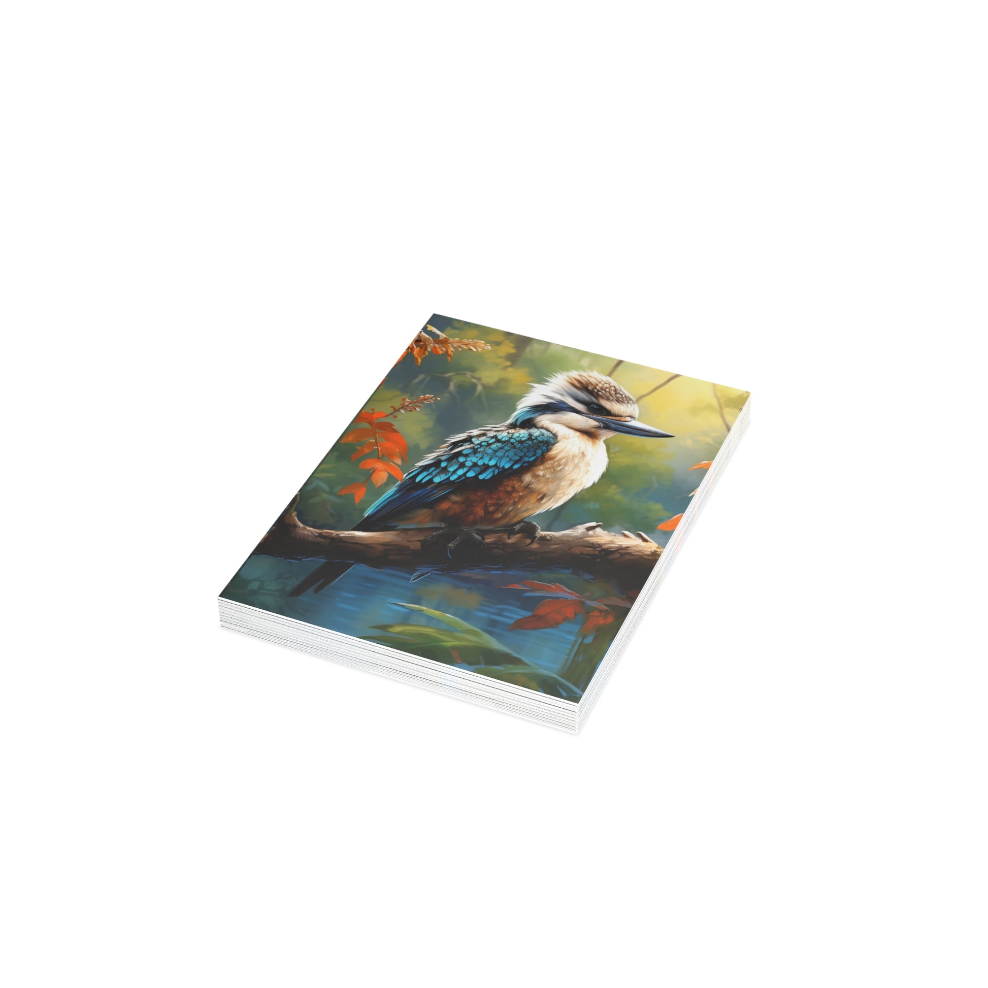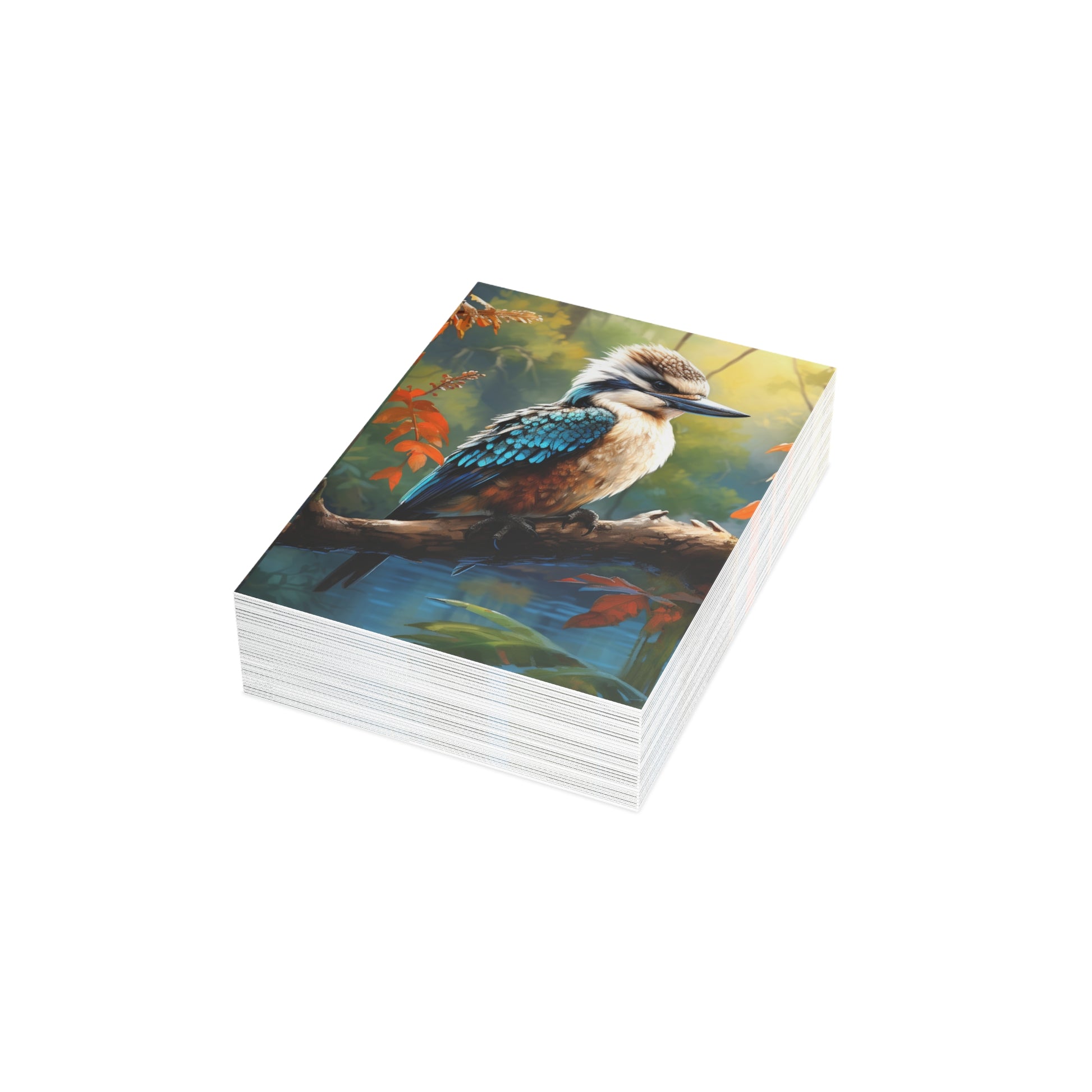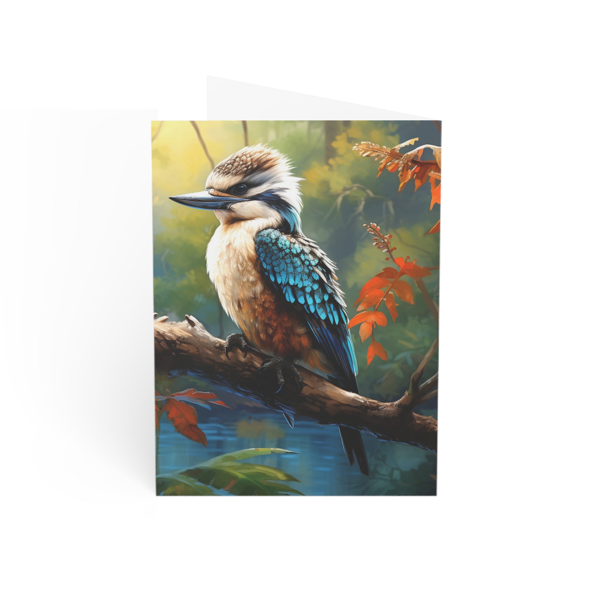Hand-painted with love and skill, this image captures the delicate balance of nature's beauty and the soothing depth of watercolours. Whether you're sending wishes, memories, or a simple hello, let the kookaburra's gaze remind you of the serene moments that life offers.