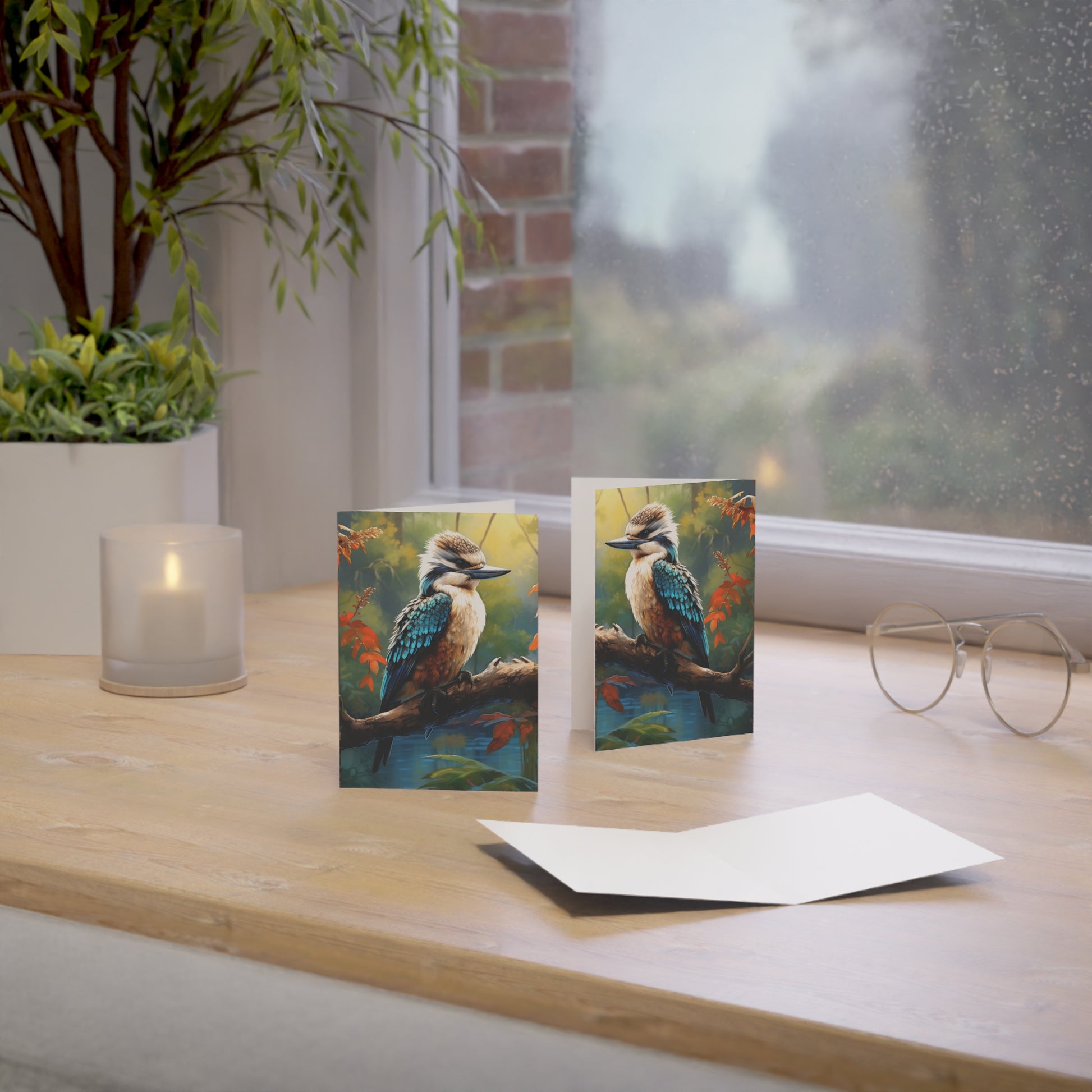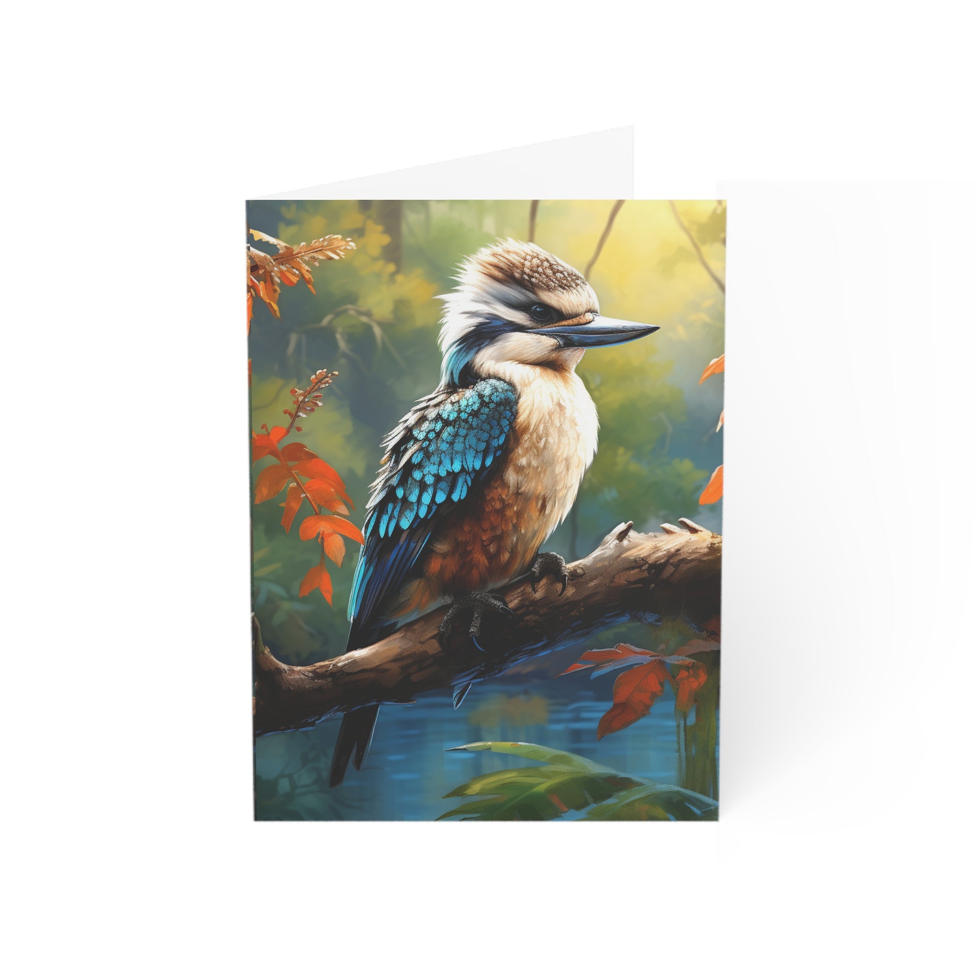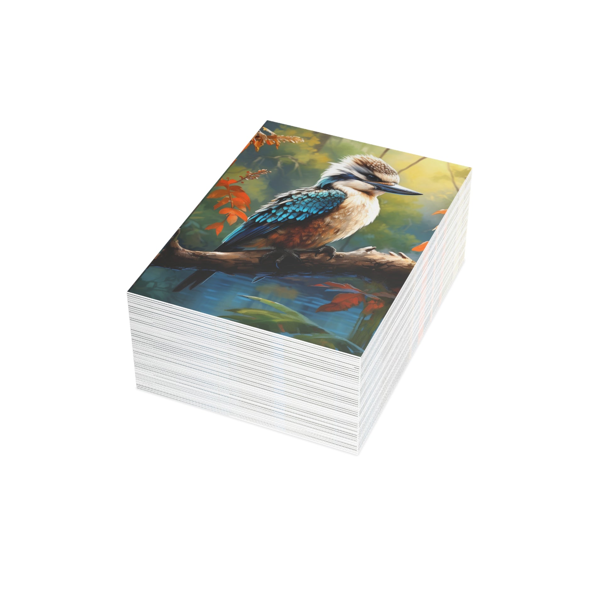 Hand-painted with love and skill, this image captures the delicate balance of nature's beauty and the soothing depth of watercolours. Whether you're sending wishes, memories, or a simple hello, let the kookaburra's gaze remind you of the serene moments that life offers.