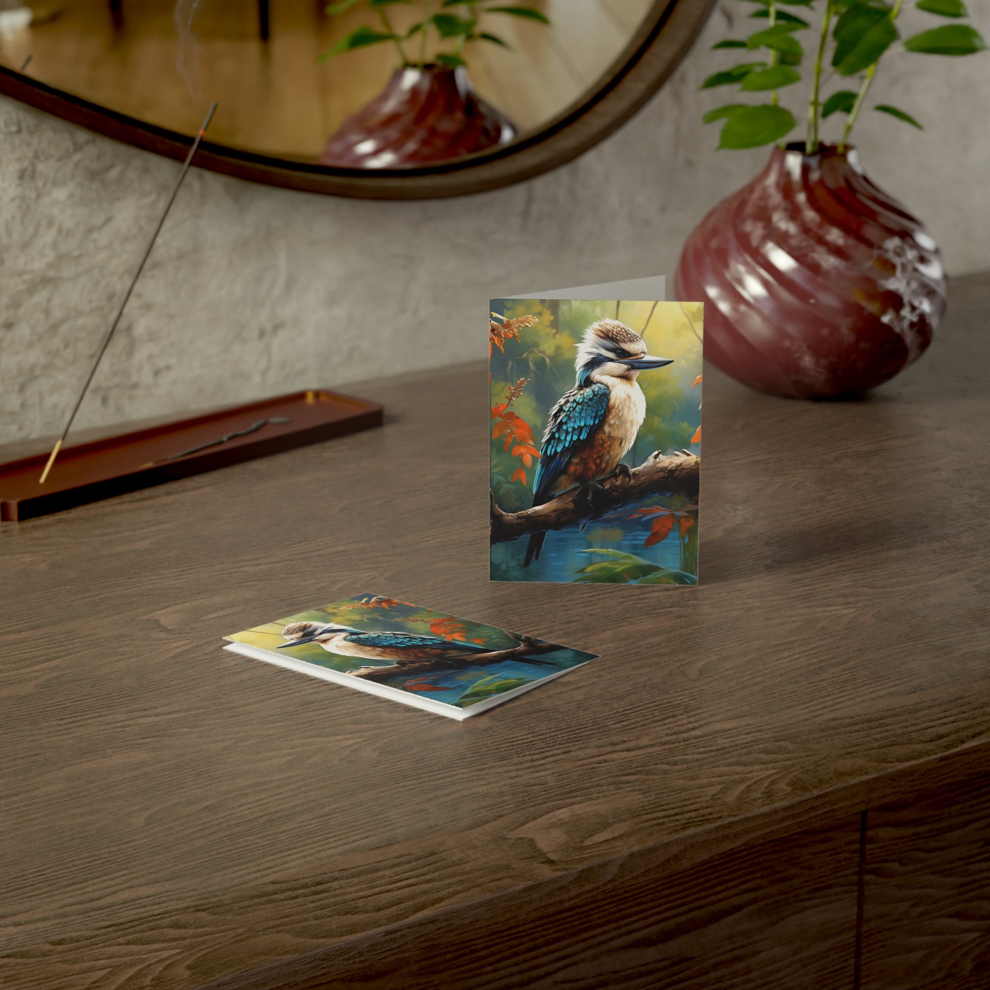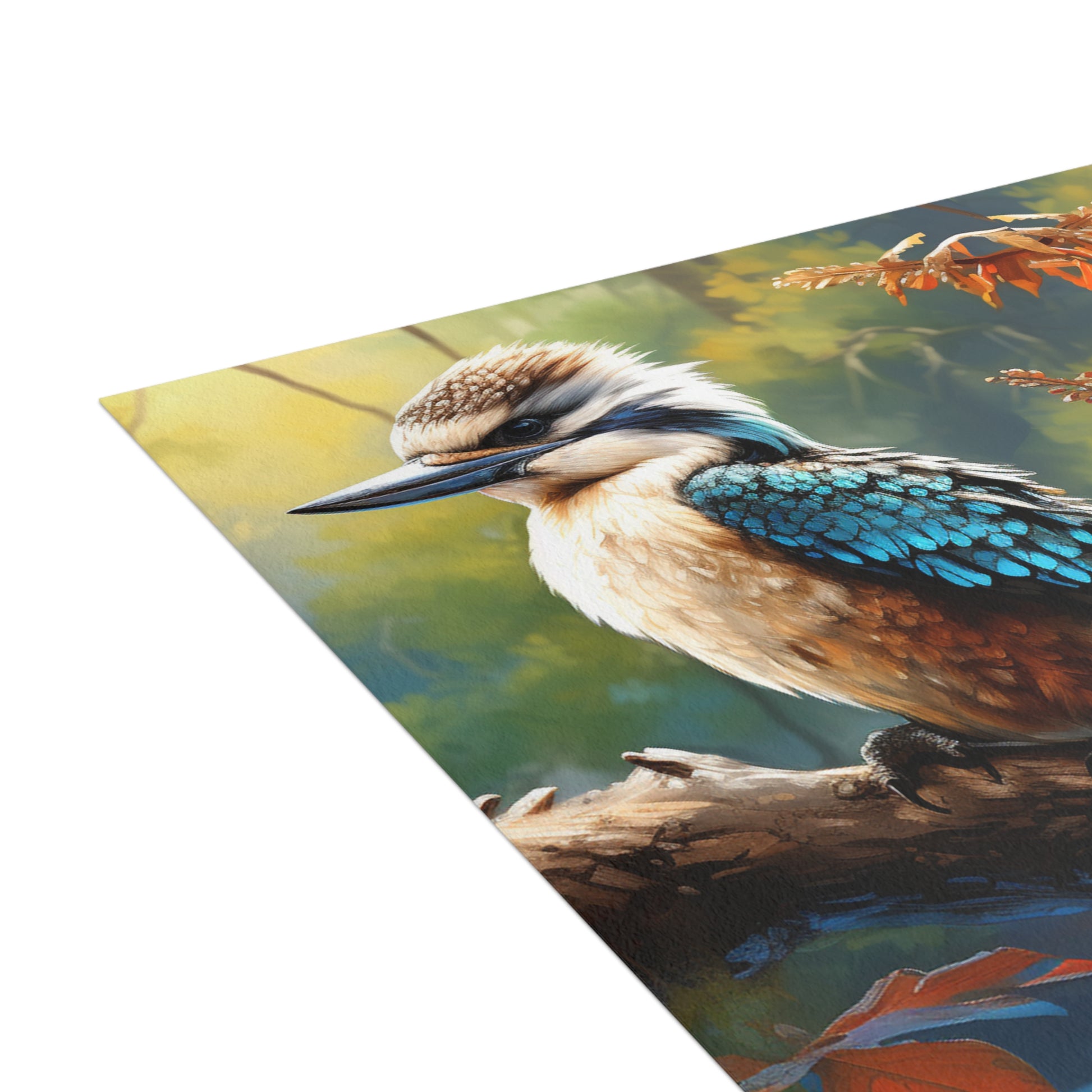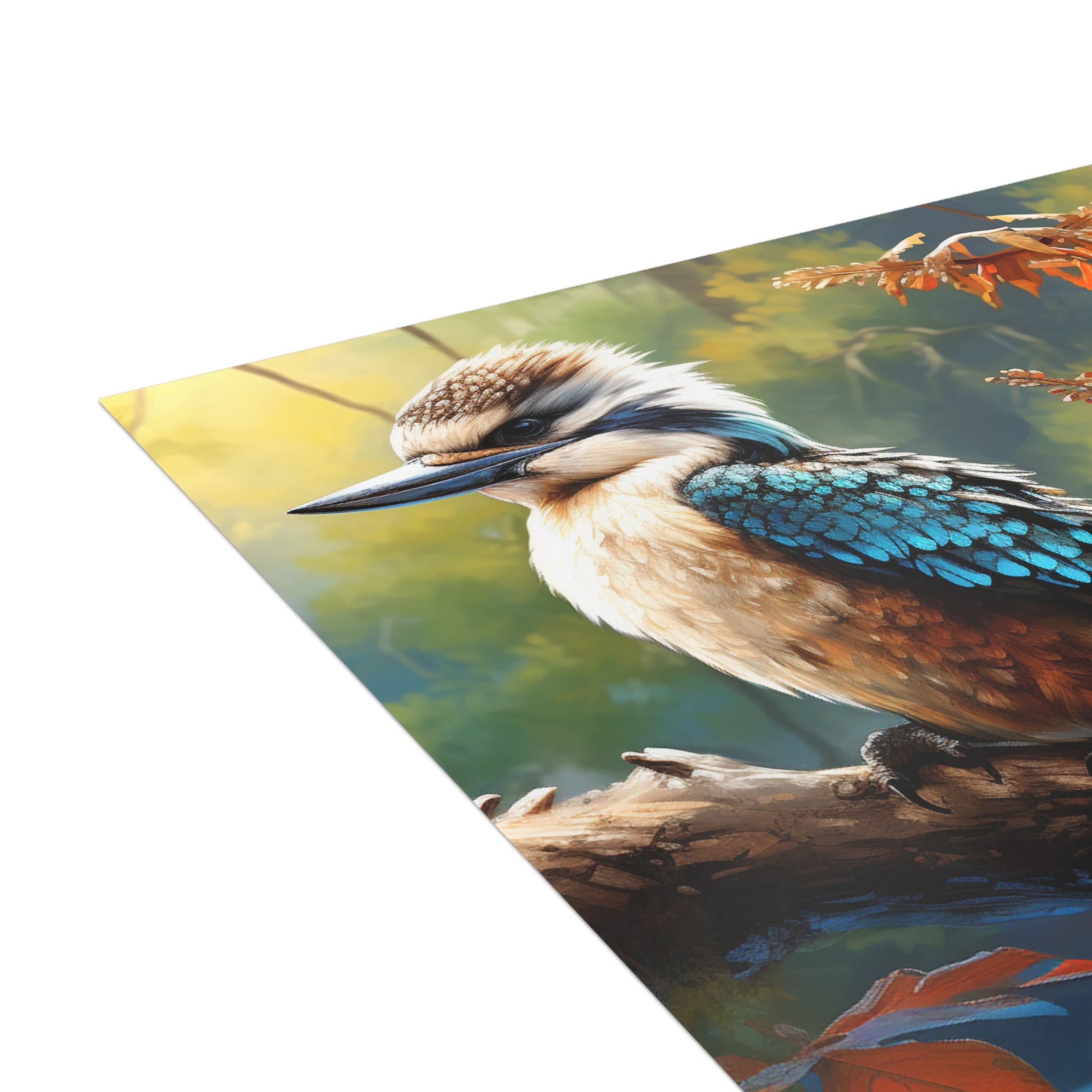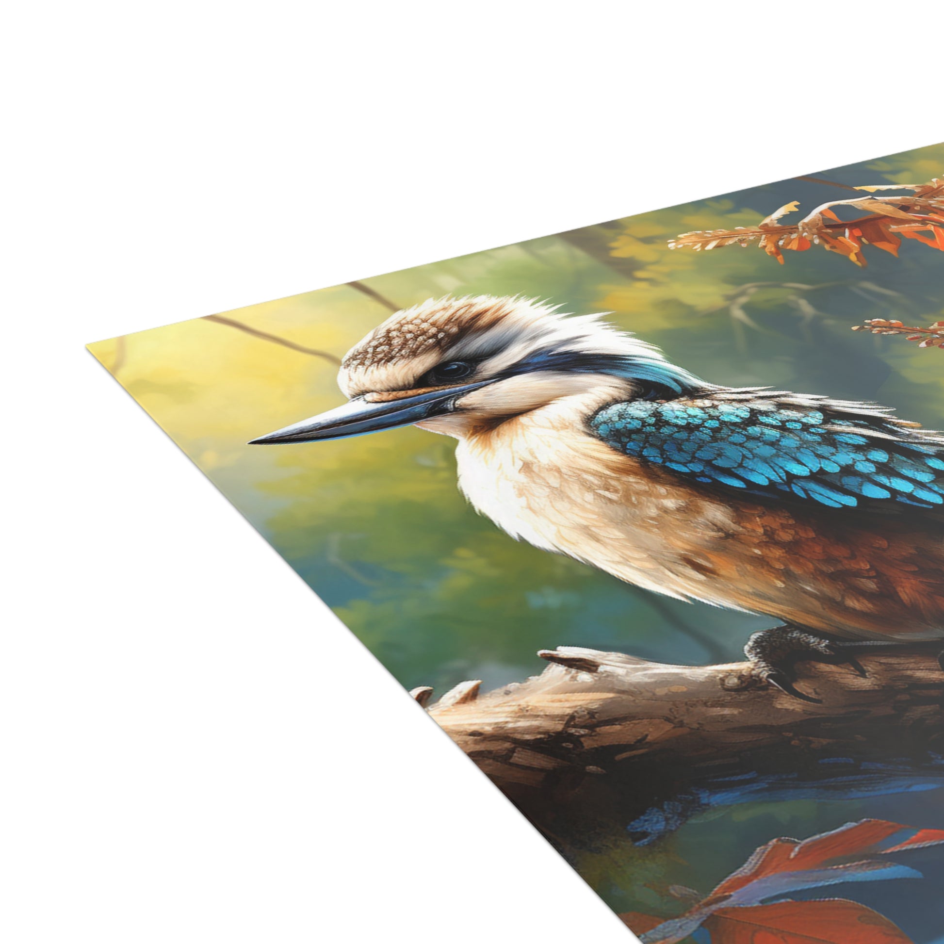Hand-painted with love and skill, this image captures the delicate balance of nature's beauty and the soothing depth of watercolours. Whether you're sending wishes, memories, or a simple hello, let the kookaburra's gaze remind you of the serene moments that life offers.